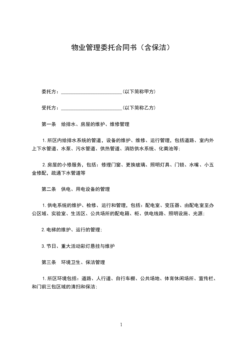 1.所区内给排水系统的管道,设备的维护、维修、运行管理,包括道路、室内外上下水管道、水泵、污水管道、供热管道、消防供水系统、化粪池等;