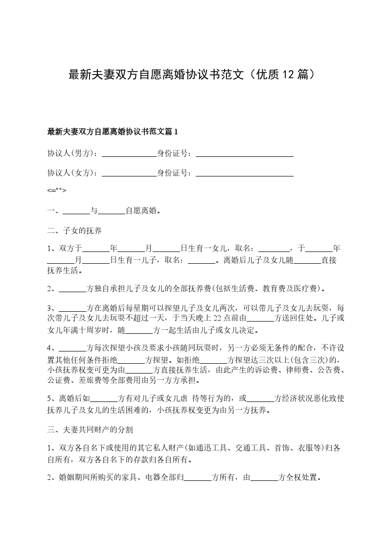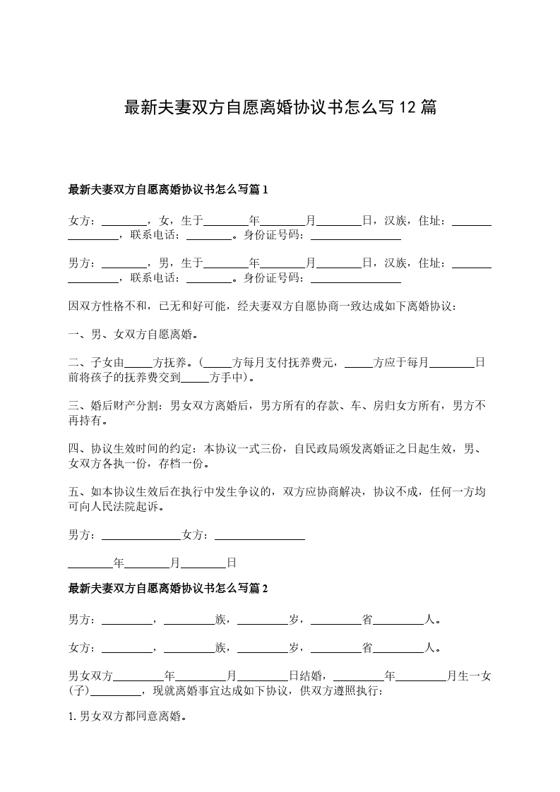 最新夫妻双方自愿离婚协议书怎么写篇12