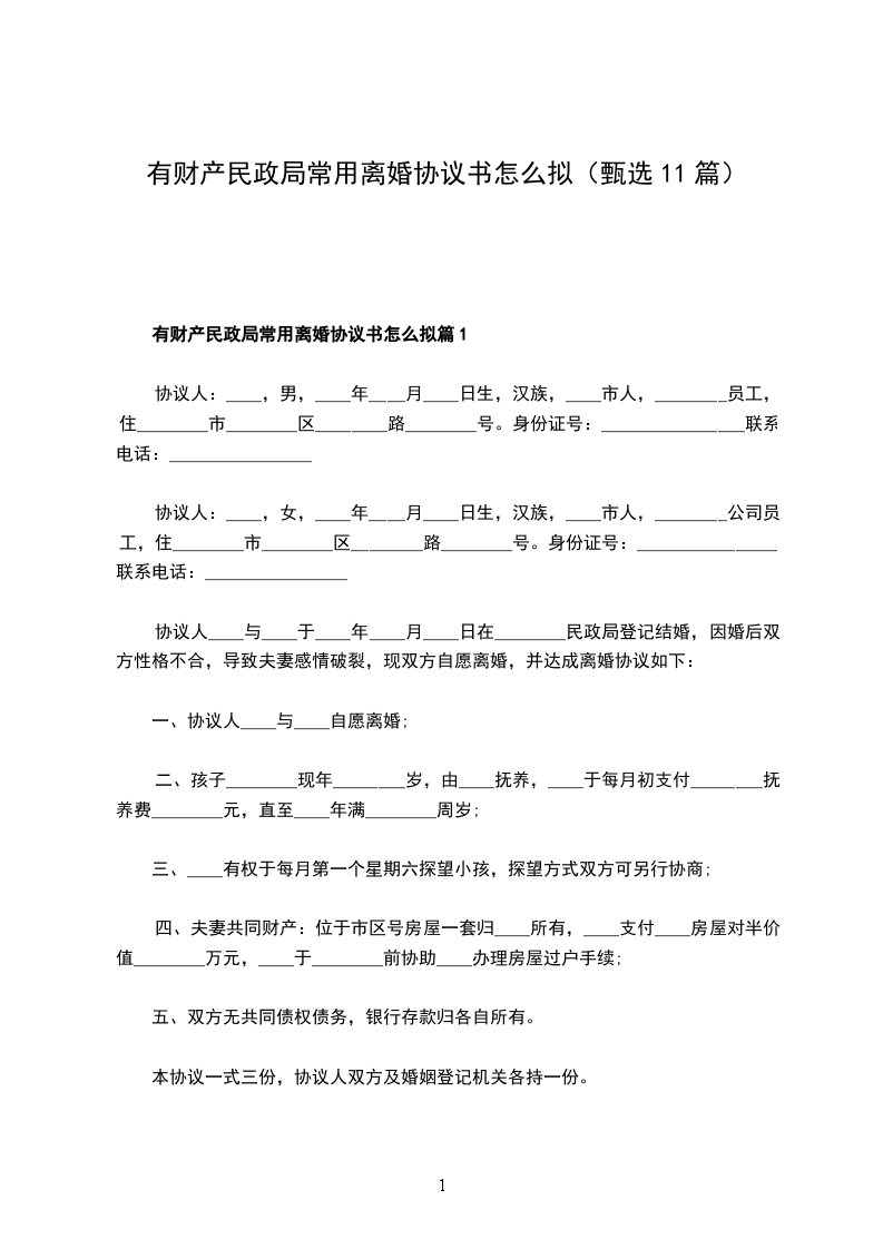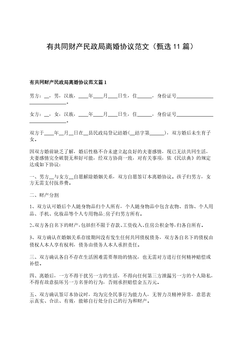 有财产民政局离婚协议书格式篇10
