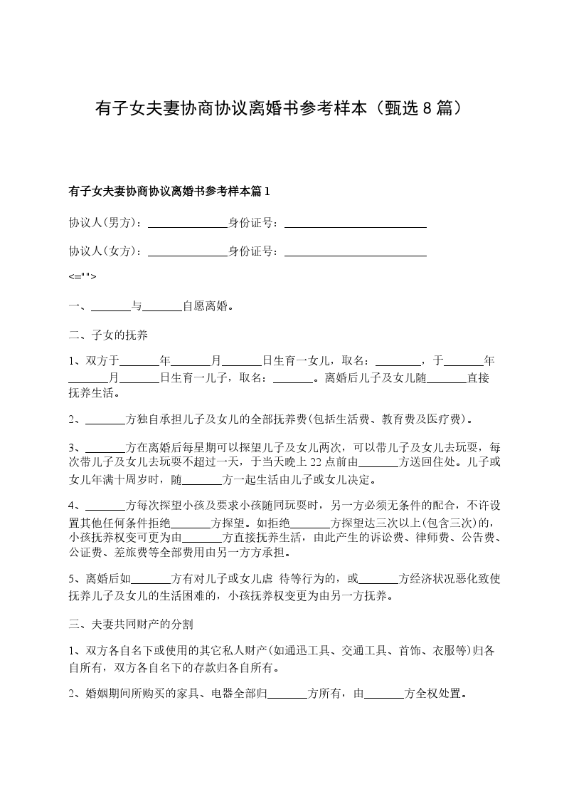 1、双方于___年___月___日生育一女儿,取名:____,于____年____月____日生育一儿子,取名:____.离婚后儿子及女儿随男方直接抚养生活。