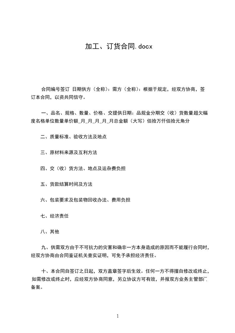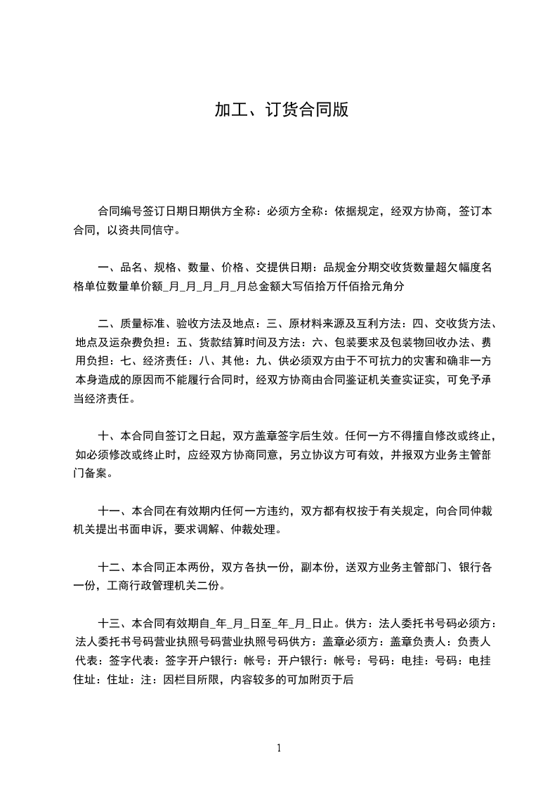 1.本合同签订后,具有法律效力。如有一方因故需变更、中断或废除本合同时,限在事故发生后五天内通知对方。双方应立即协商,另立协议书。重要产品报业务主管部门备案。