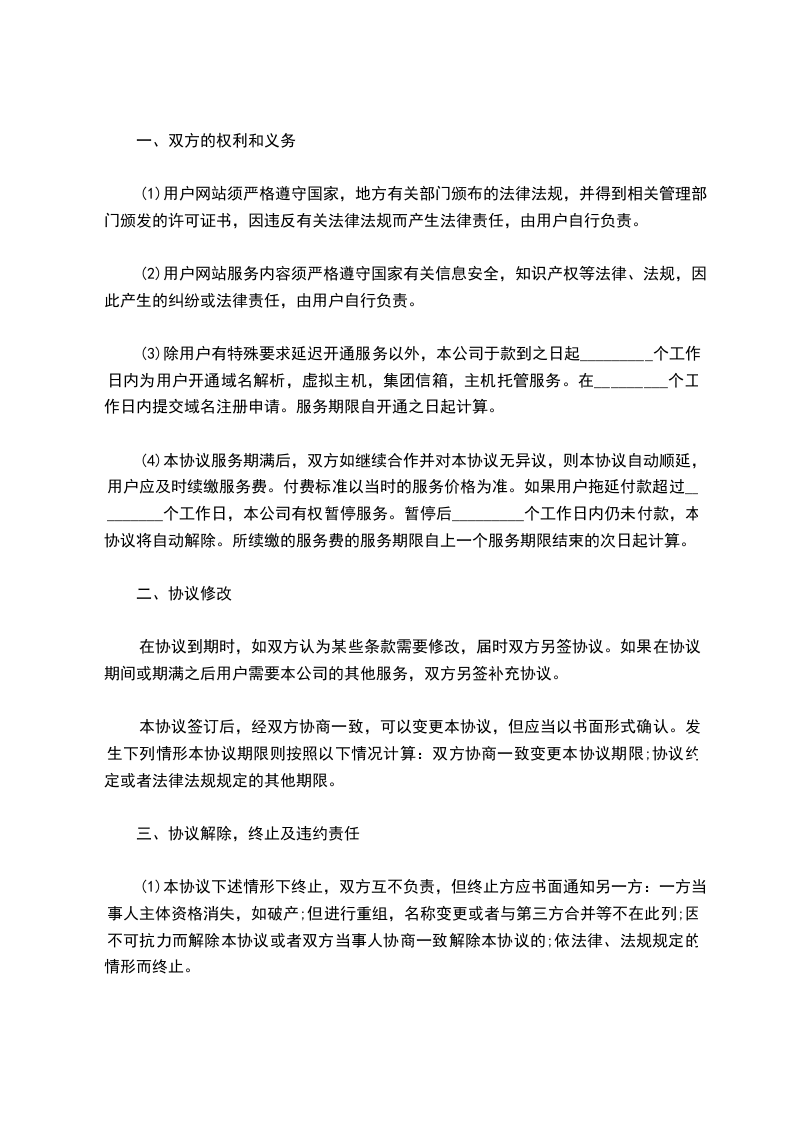 (2)本协议到期后,如果用户没有按时支付续约款项,则双方认同本协议执行终止。本公司届时将停止服务。