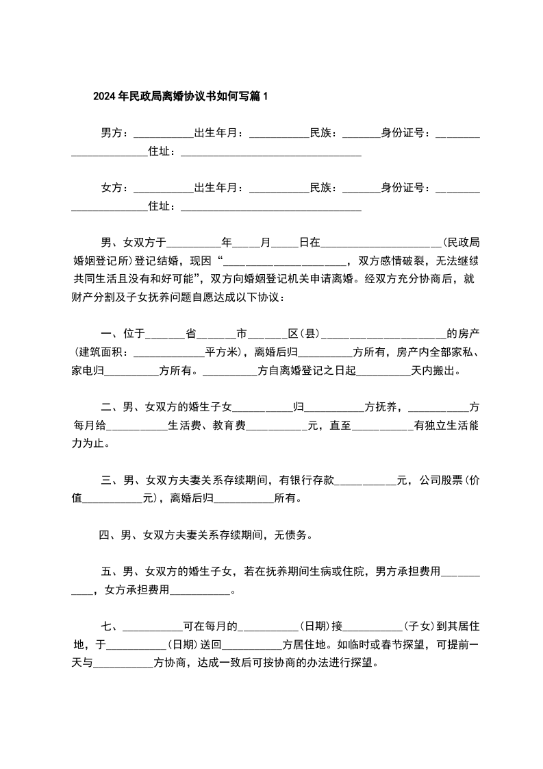 男、女双方于__________年_____月_____日在______________________(民政局婚姻登记所)登记结婚,现因“______________________,双方感情破裂,无法继续共同生活且没有和好可能”,双方向婚姻登记机关申请离婚。经双方充分协商后,就财产分割及子女抚养问题自愿达成以下协议: