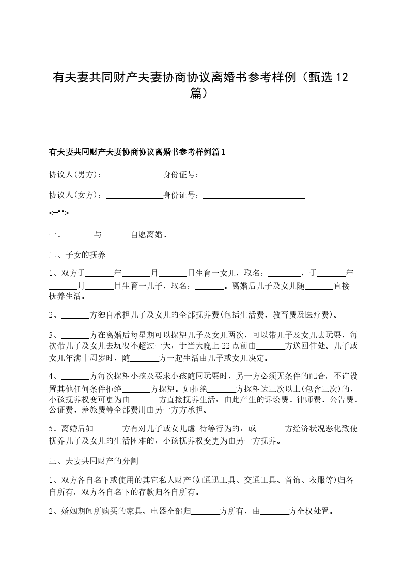 有财产夫妻协商离婚协议书参考样例篇12