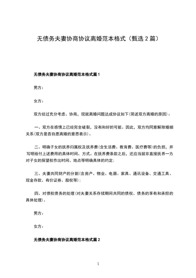 无债务夫妻协商协议离婚书篇2