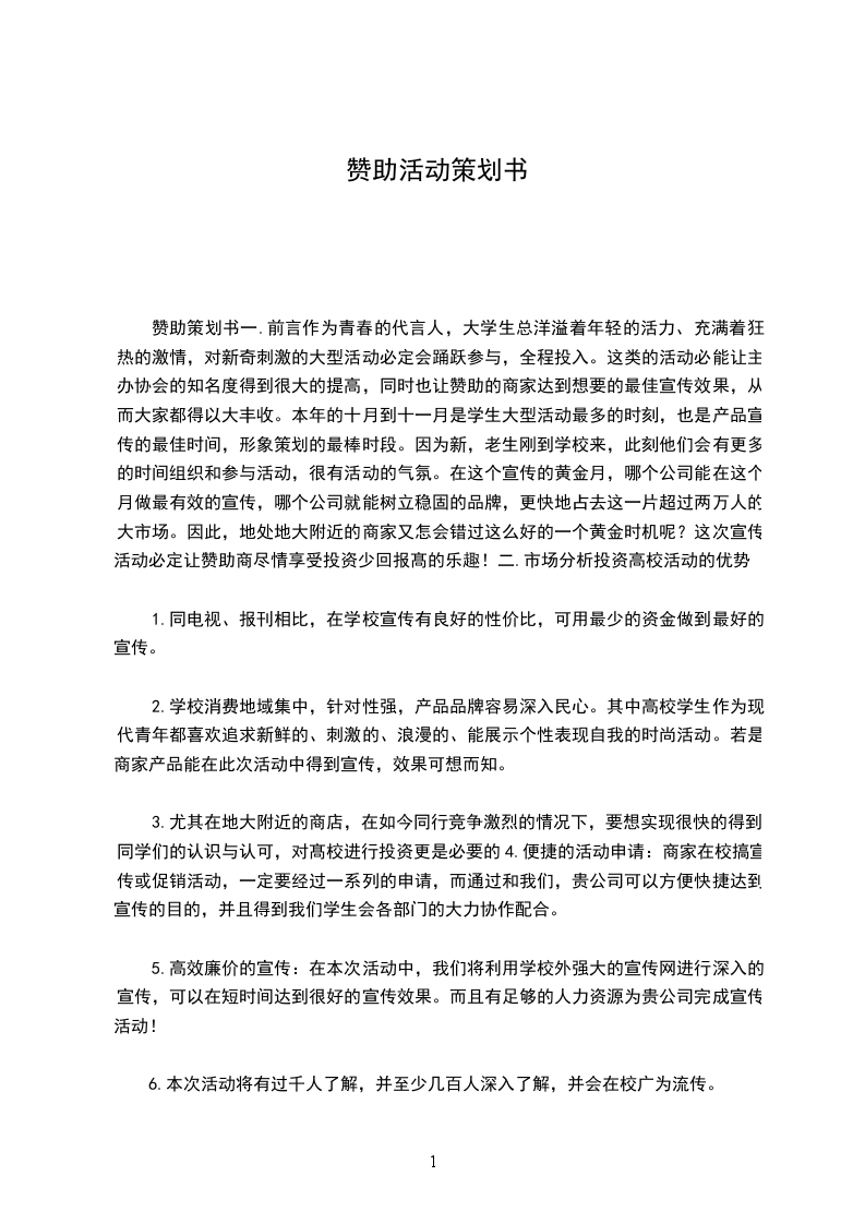 在学校范围内布置横幅一条上有赞助商冠名,横幅内容由双方共同决定;在活动宣传刊物及海报上留有一定版面给赞助商家。