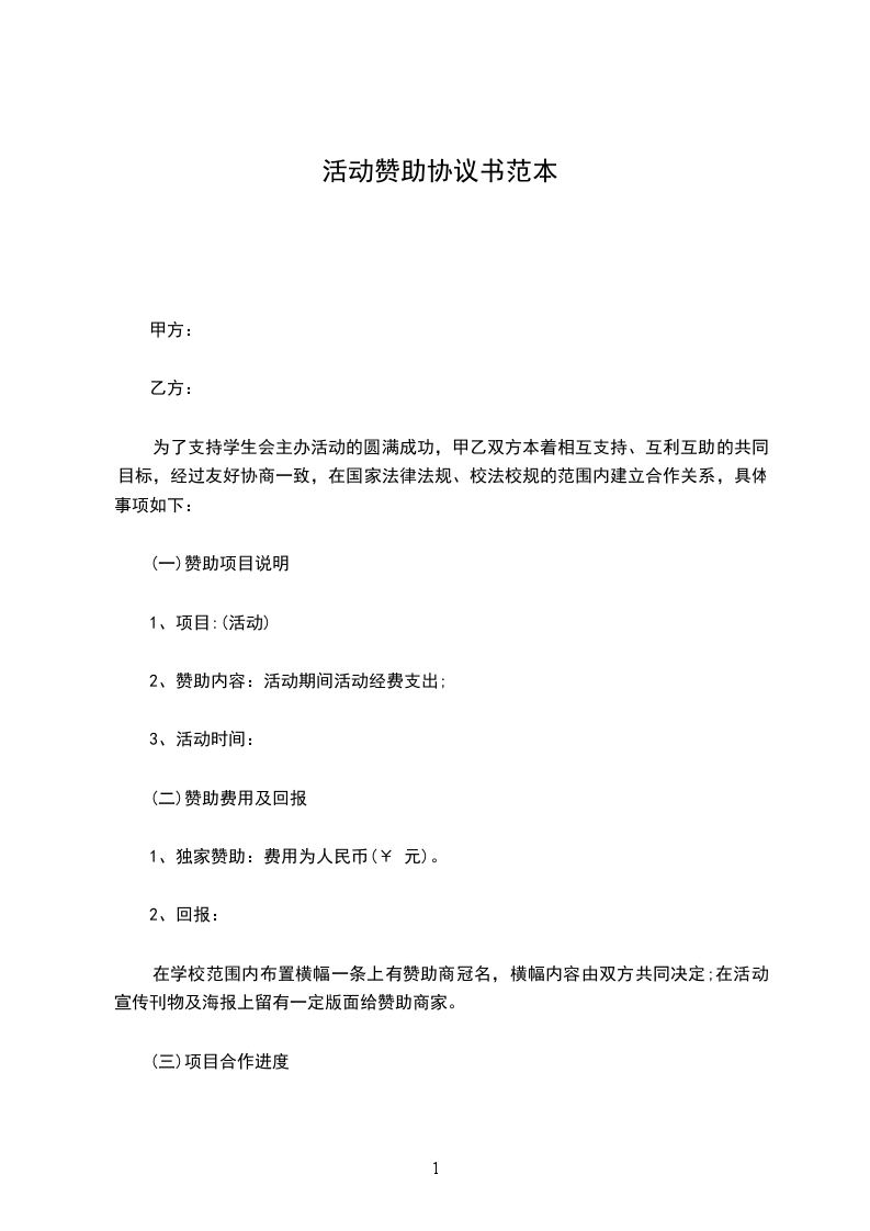 为了支持学生会主办活动的圆满成功,甲乙双方本着相互支持、互利互助的共同目标,经过友好协商一致,在国家法律法规、校法校规的范围内建立合作关系,具体事项如下: