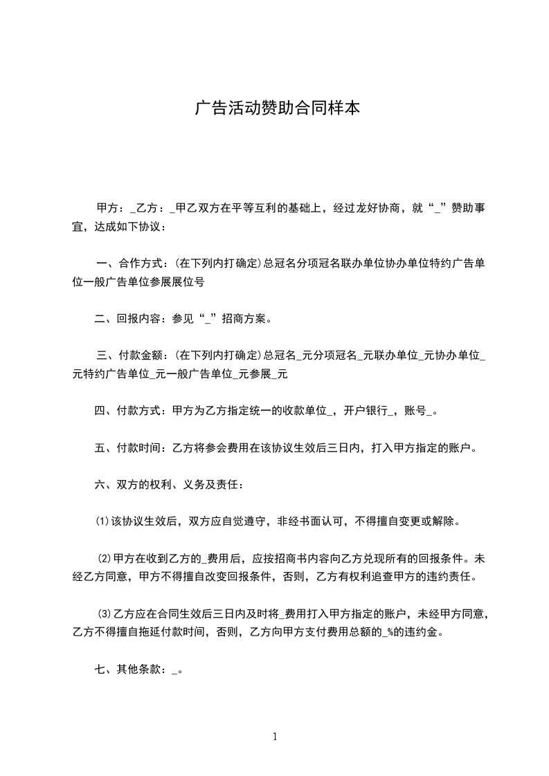(1)甲方作为活动主办单位,整个系列活动由甲方自行策划、筹备及组织开展,并保证整个晚会顺利进行(在晚会前把准备工作做好)。乙方作为系列活动的赞助单位,是协助和感受本次活动的内容,支持和鼓励高校学生会的发展;