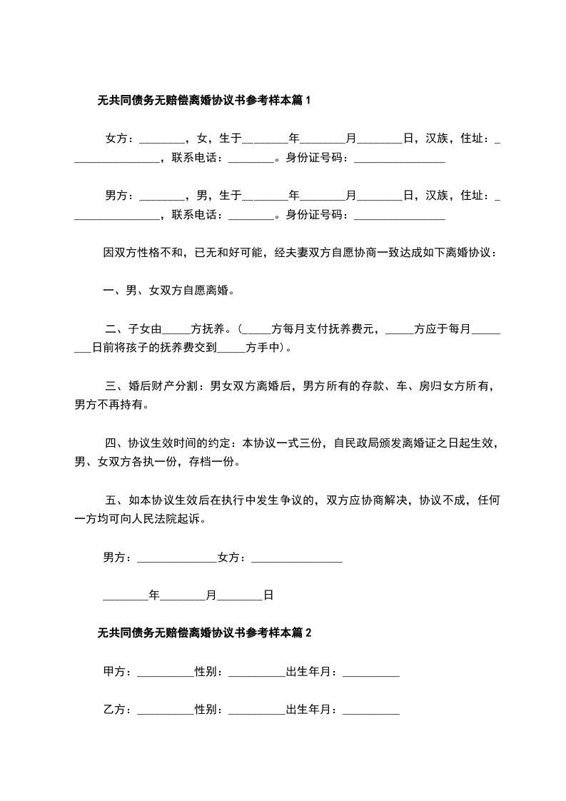 四、夫妻双方无共同债权、债务的享有和清偿情况。