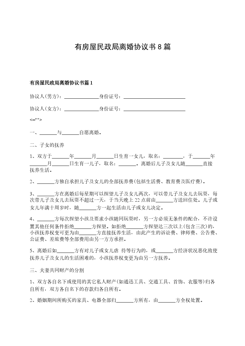 第八条本协议一式三份,双方各执一份,一份给婚姻登记机关;自离婚登记之日起生效。