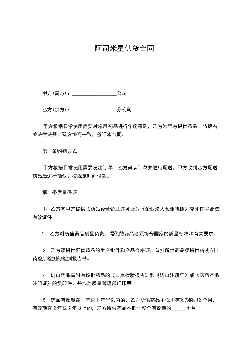 (一)甲方同意乙方购买采购清单上的药品。