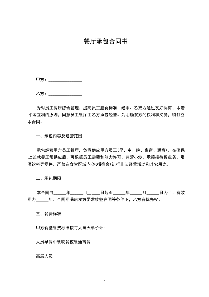 为对员工餐厅综合管理,提高员工膳食标准,经甲、乙双方通过友好协商,本着平等互利的原则,同意员工餐厅由乙方承包经营。为明确双方的权利和义务,特订立本合同。