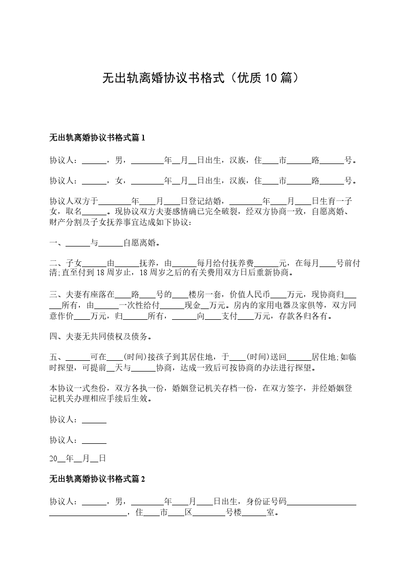 八、本协议一式三份,男、女双方各执一份,婚姻登记机关存档一份。