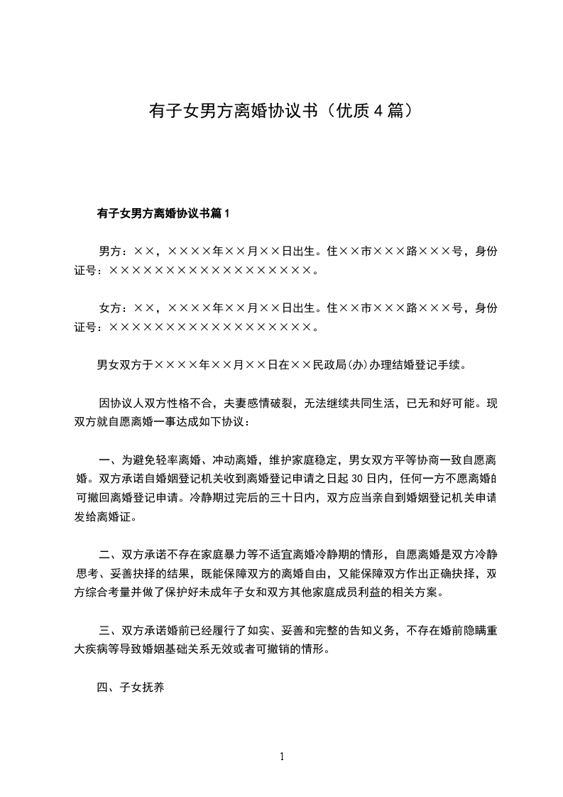 有子女男方离婚协议书篇4