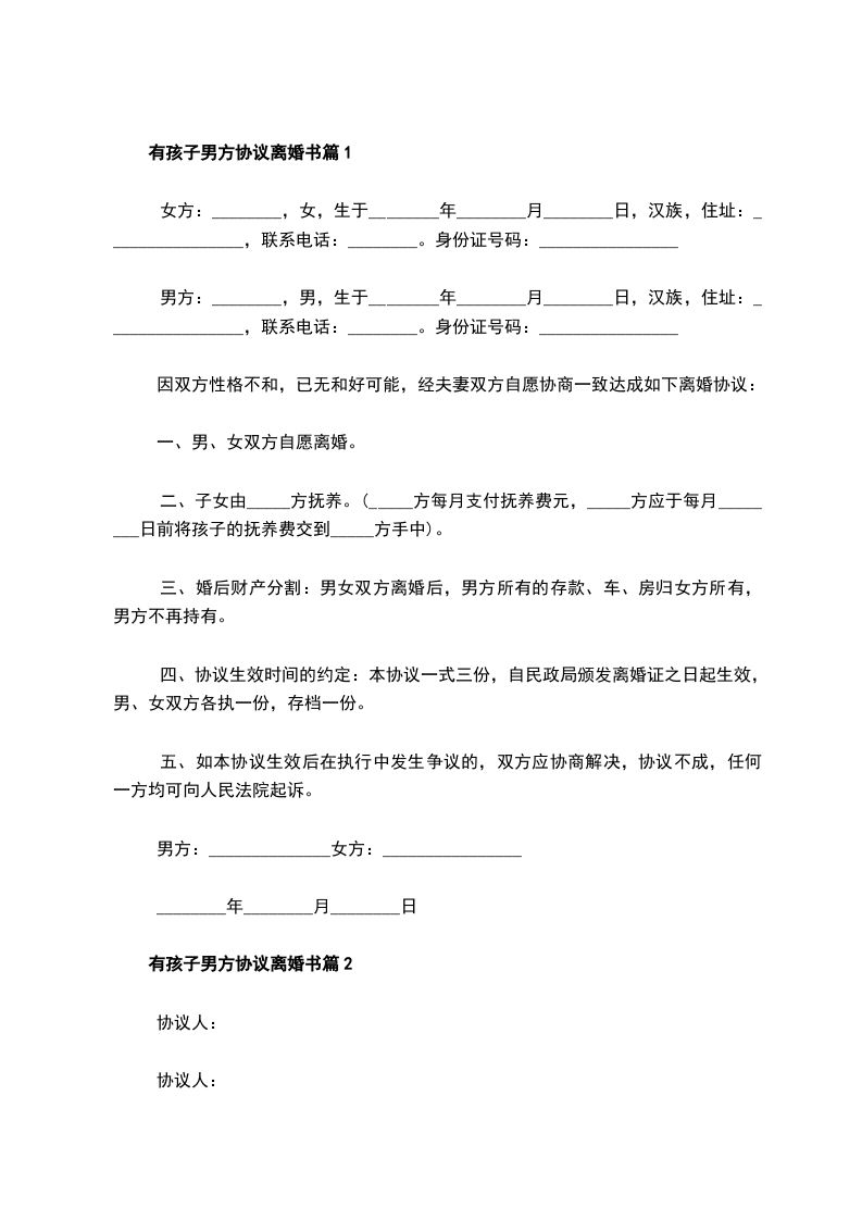有孩子男方协议离婚书篇9
