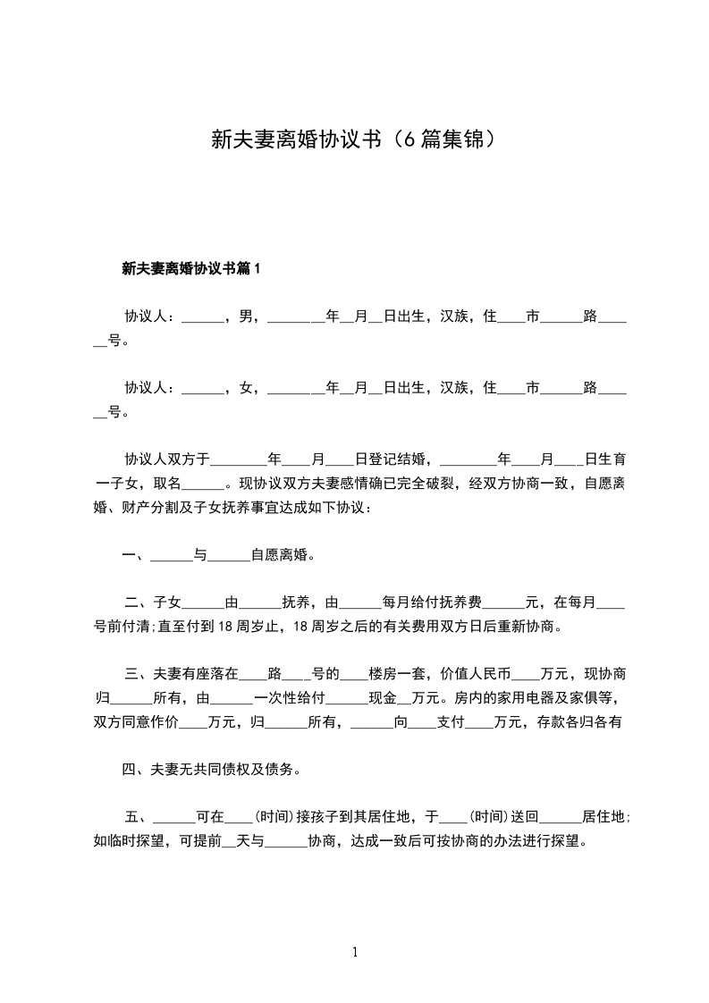 新夫妻离婚协议书篇1