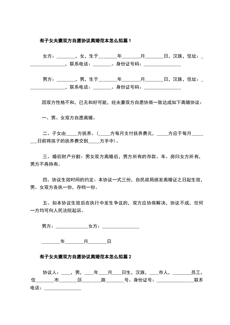 有子女双方自愿离婚协议书格式篇9