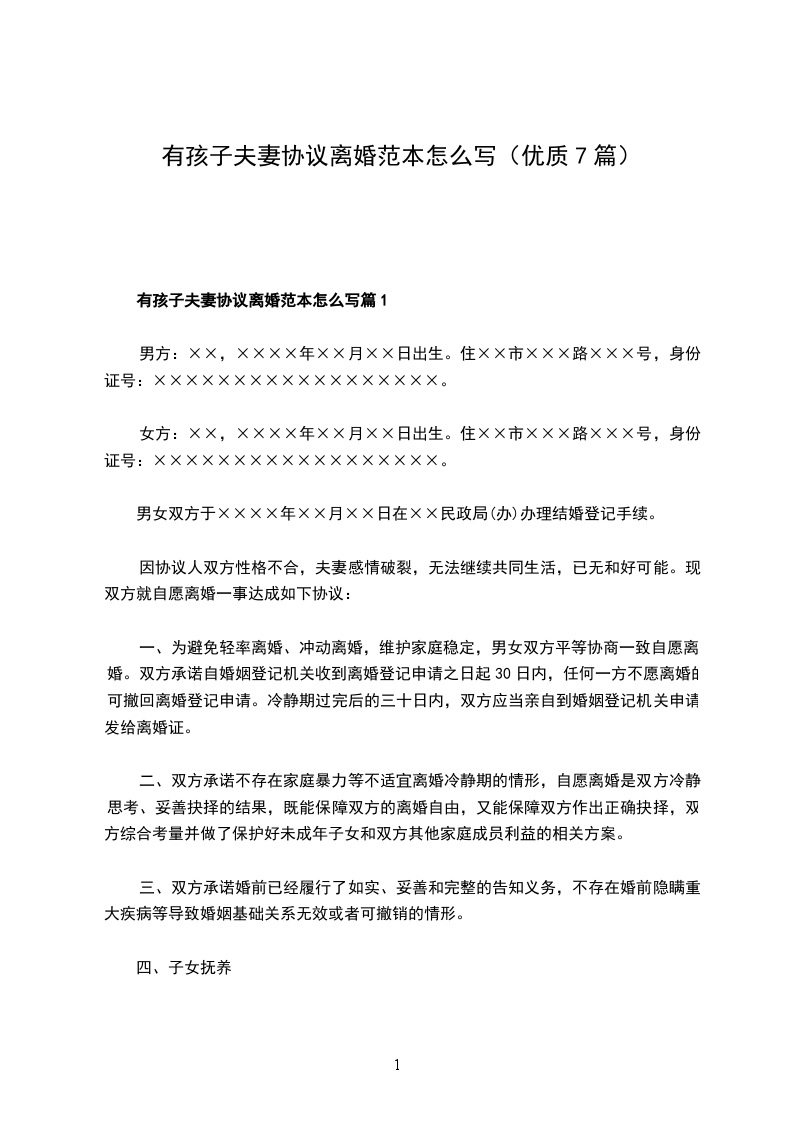 有孩子夫妻协议离婚范本怎么写篇7