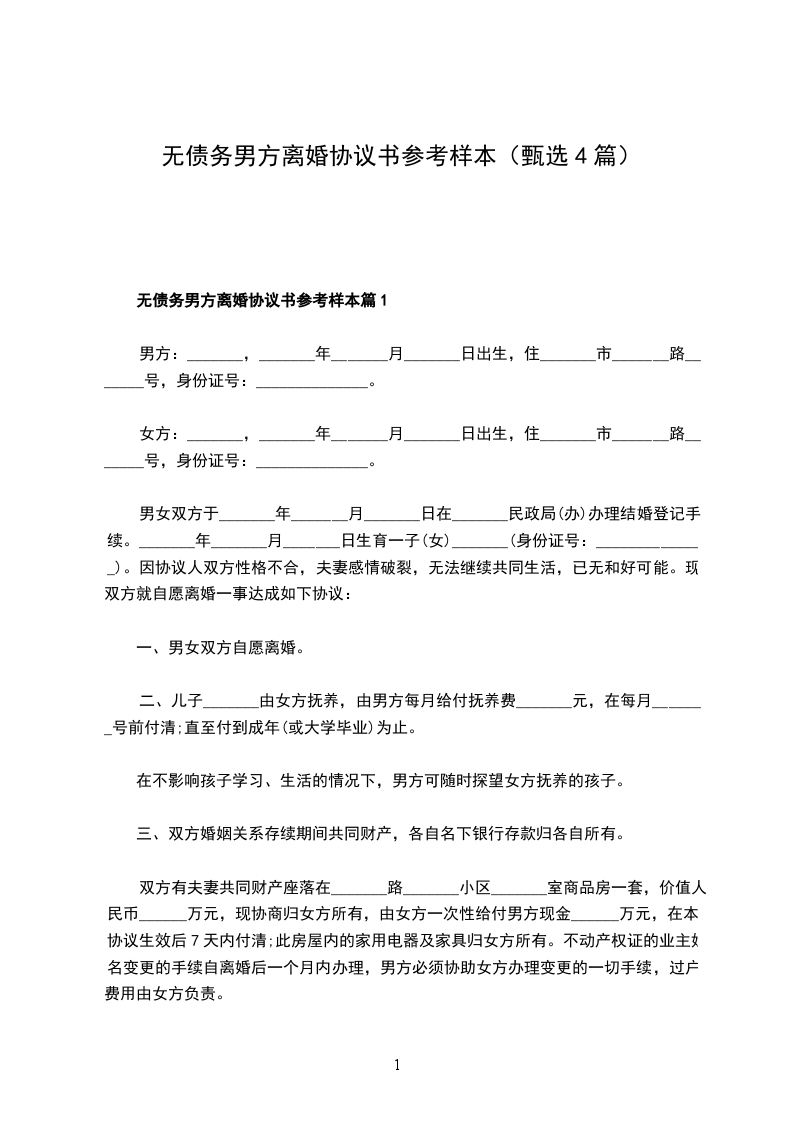 男方:_______,_______年_______月_______日出生,住_______市_______路_______号,身份证号:______________。