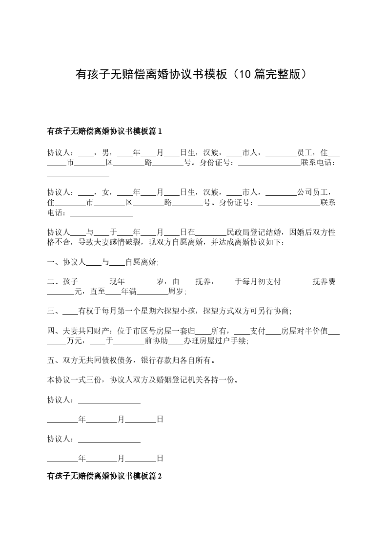 有孩子无赔偿离婚协议书样本篇2