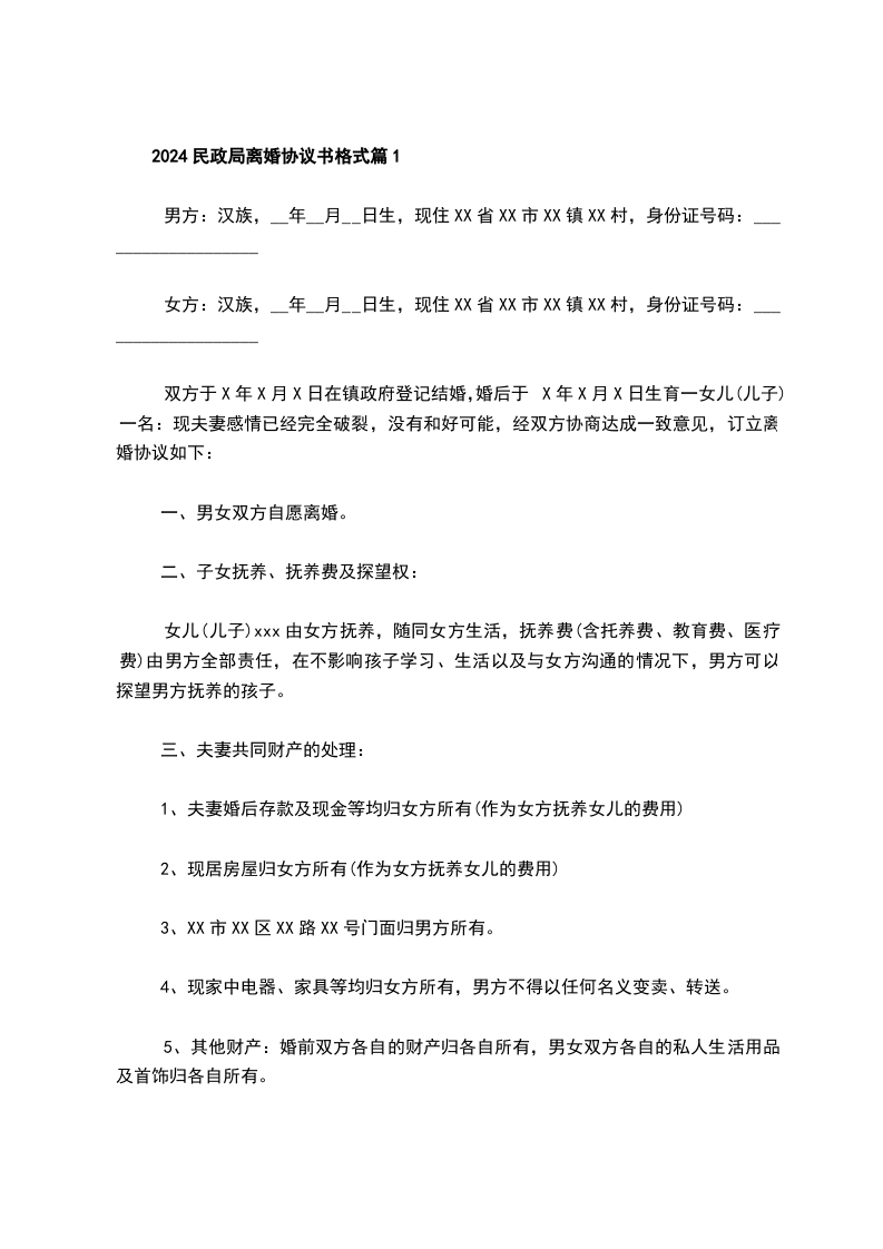 本协议一式三份,一份二张,男、女双方各执一份,婚姻登记机关存档一份,自婚姻登记机颁发《离婚证》之日起生效。