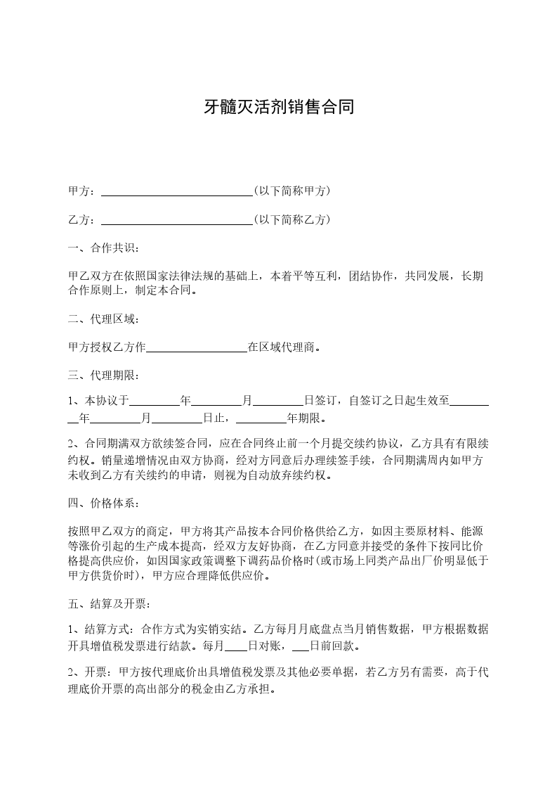 3)甲方同意为乙方开具供货产品在约定区域的代理销售委托书及开展业务所需的其他相关资料。