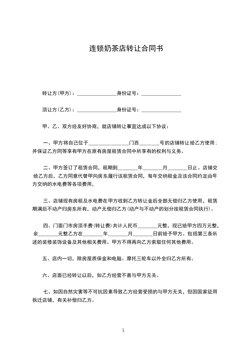 甲、乙、双方经友好协商,就店铺转让事宜达成以下协议: