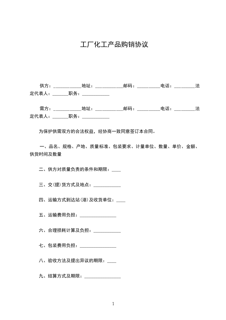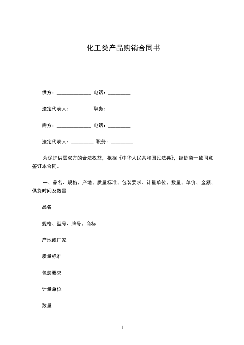 一、品名、规格、产地、质量标准、包装要求、计量单位、数量、单价、金额、供货时间及数量