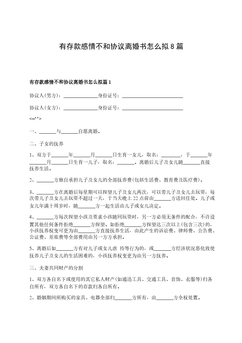 有存款感情不和协议离婚书样本篇8