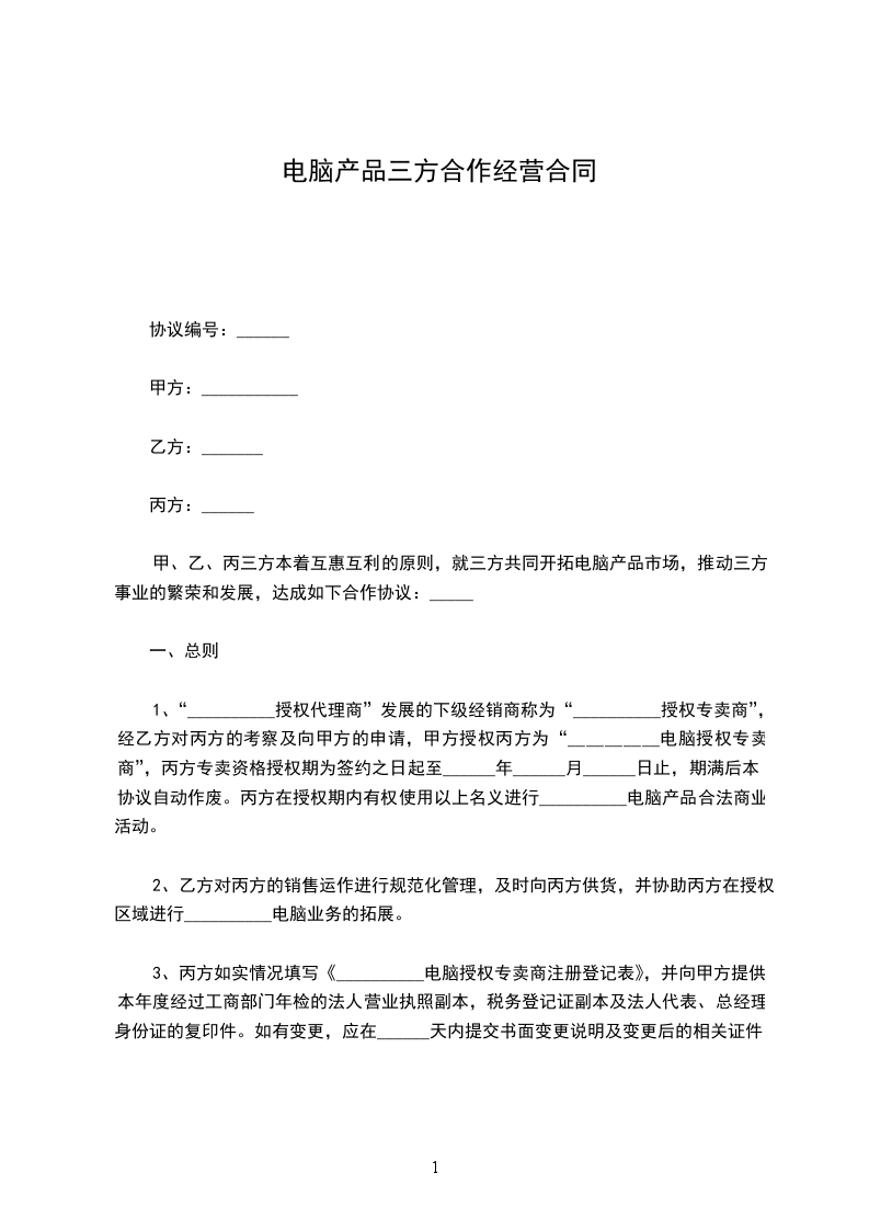 甲、乙、丙三方经友好协商,以自愿、平等互利为原则,就乙方经销甲方之“____________”系列产品,丙方作为乙方的担保人,三方达成如下协议: