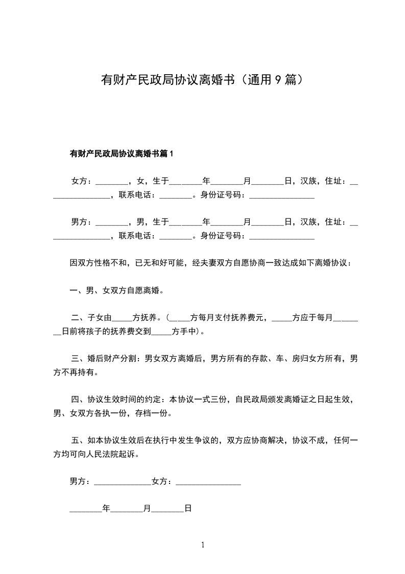 有财产民政局协议离婚书篇9