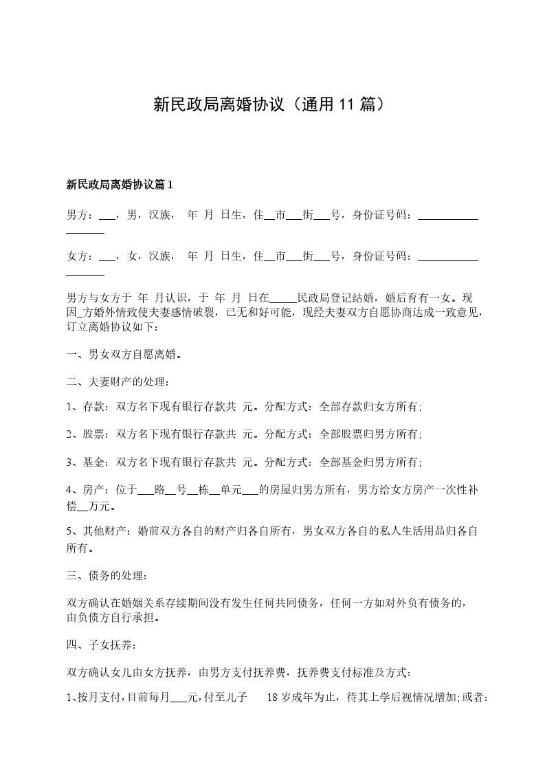 本协议书系双方真实意思表示,上述内容全部真实有效,一旦提供虚假情况,双方当事人自愿承担一切法律后果。本协议书一式____份,婚姻登记机关存档____份,双方各执____份,双方签字,并经婚姻登记机关办理离婚登记后生效。