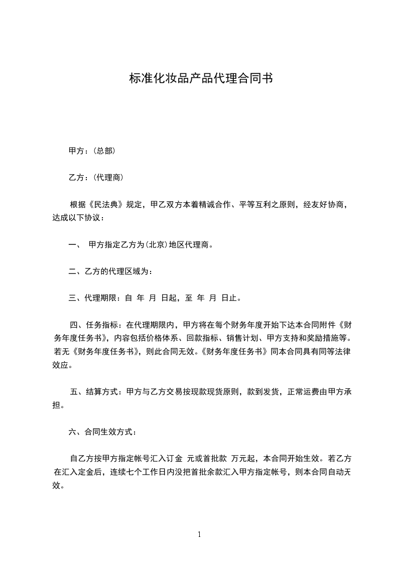 四、任务指标:在代理期限内,甲方将在每个财务年度开始下达本合同附件《财务年度任务书》,内容包括价格体系、回款指标、销售计划、甲方支持和奖励措施等。若无《财务年度任务书》,则此合同无效。《财务年度任务书》同本合同具有同等法律效应。