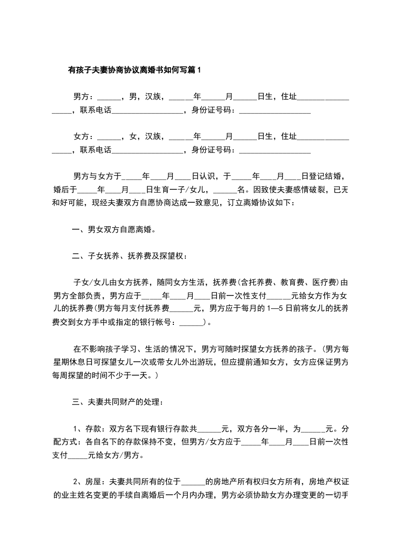 有孩子夫妻离婚协议书怎么写篇3