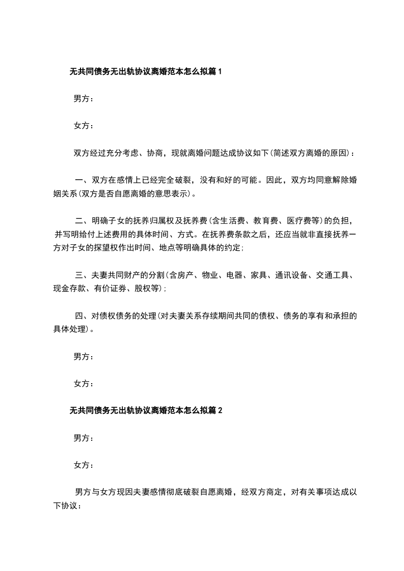 1、甲乙双方确认在婚姻关系存续期间无共同债务;