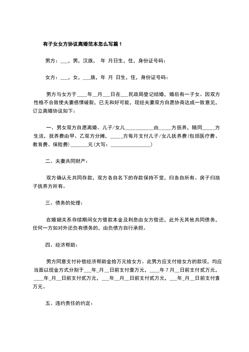 有子女女方协议离婚范本怎么写篇5