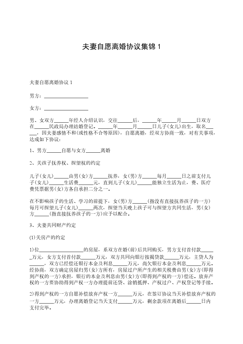 一、男、女双方自愿离婚。