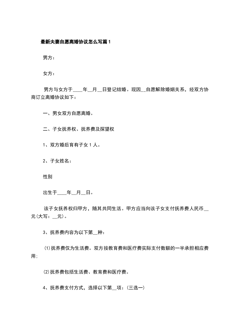 最新夫妻自愿协议离婚范本范文篇4