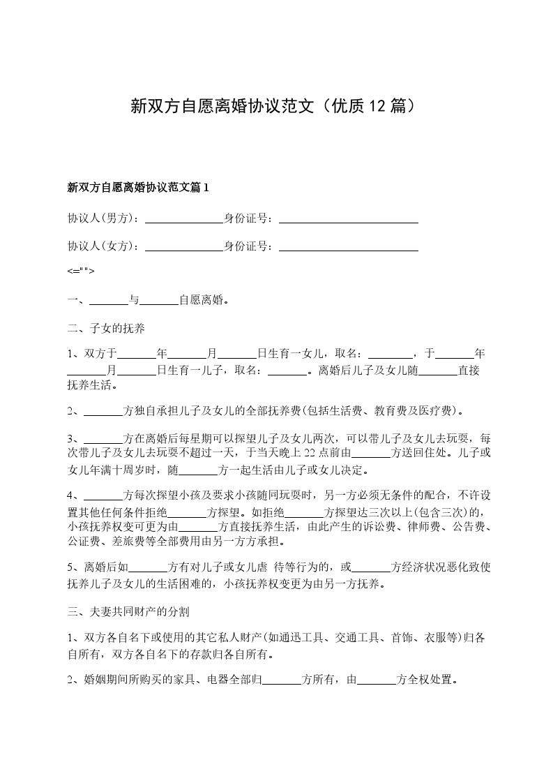 八、本协议一式三份,男、女双方各执一份,婚姻登记机关存档一份。