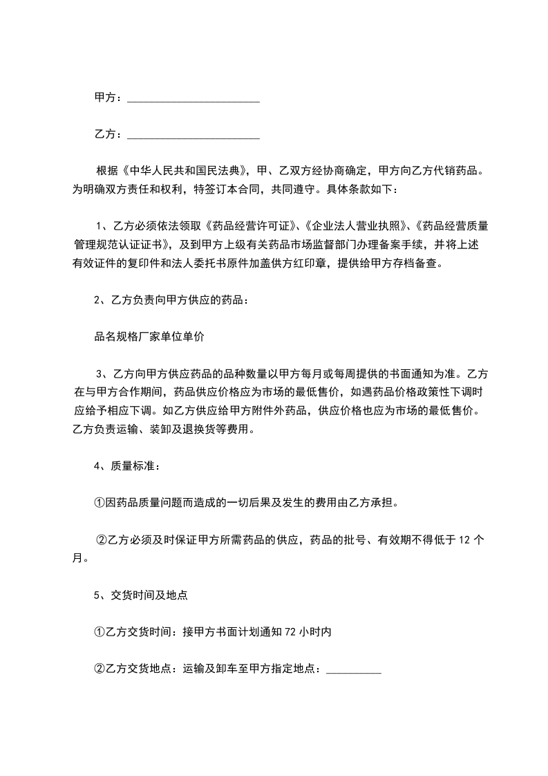 二、交货地点:________________________药房;方式________________________:供方送货___;时间:__________________,要货_______日内______。