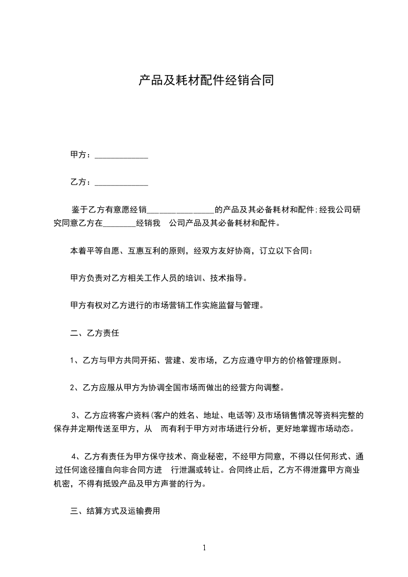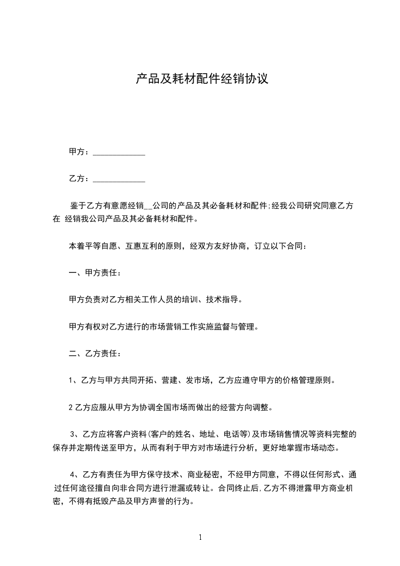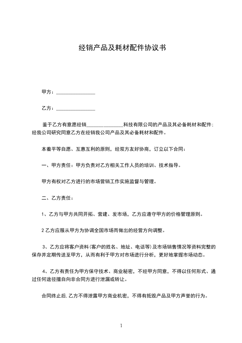 鉴于乙方有意愿经销________________的产品及其必备耗材和配件;经我公司研究同意乙方在________经销我 公司产品及其必备耗材和配件。