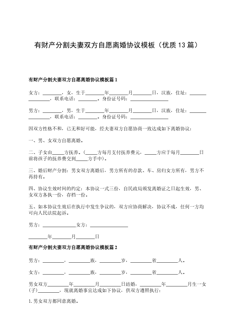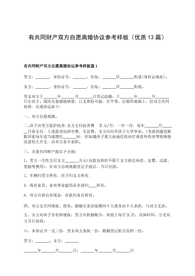 有财产双方自愿离婚协议书篇13