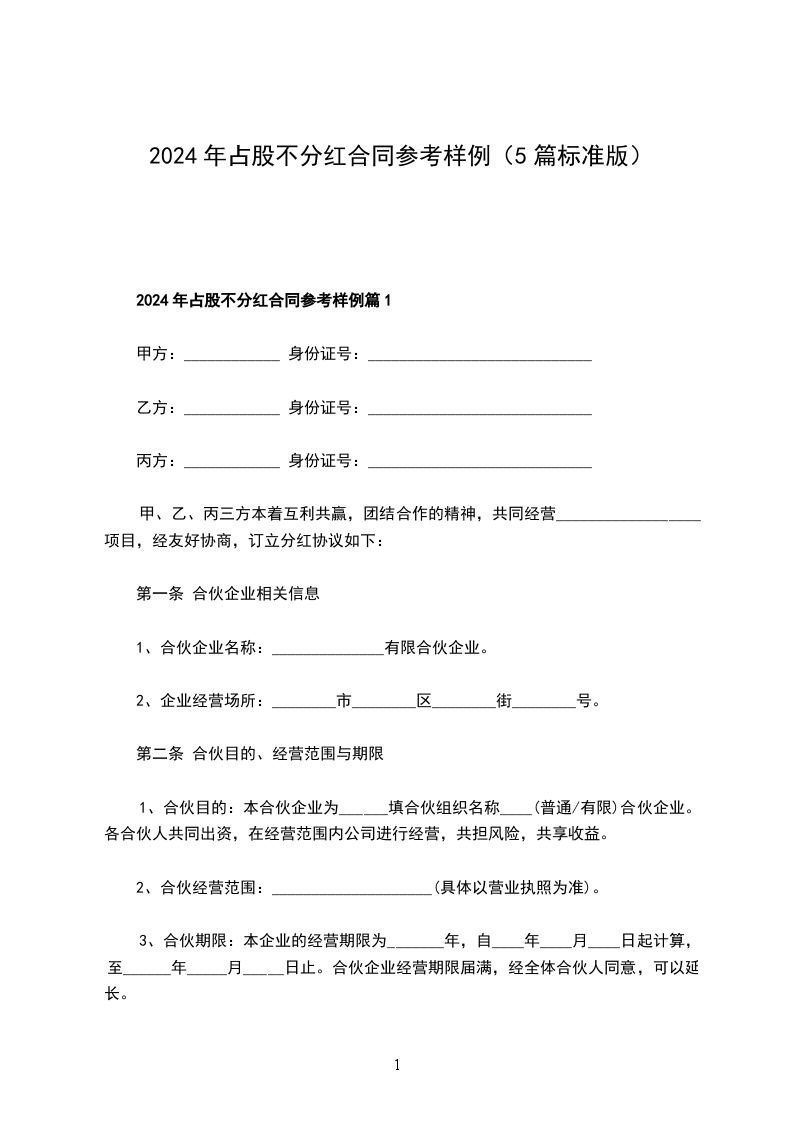 2024离婚协议参考样例篇1