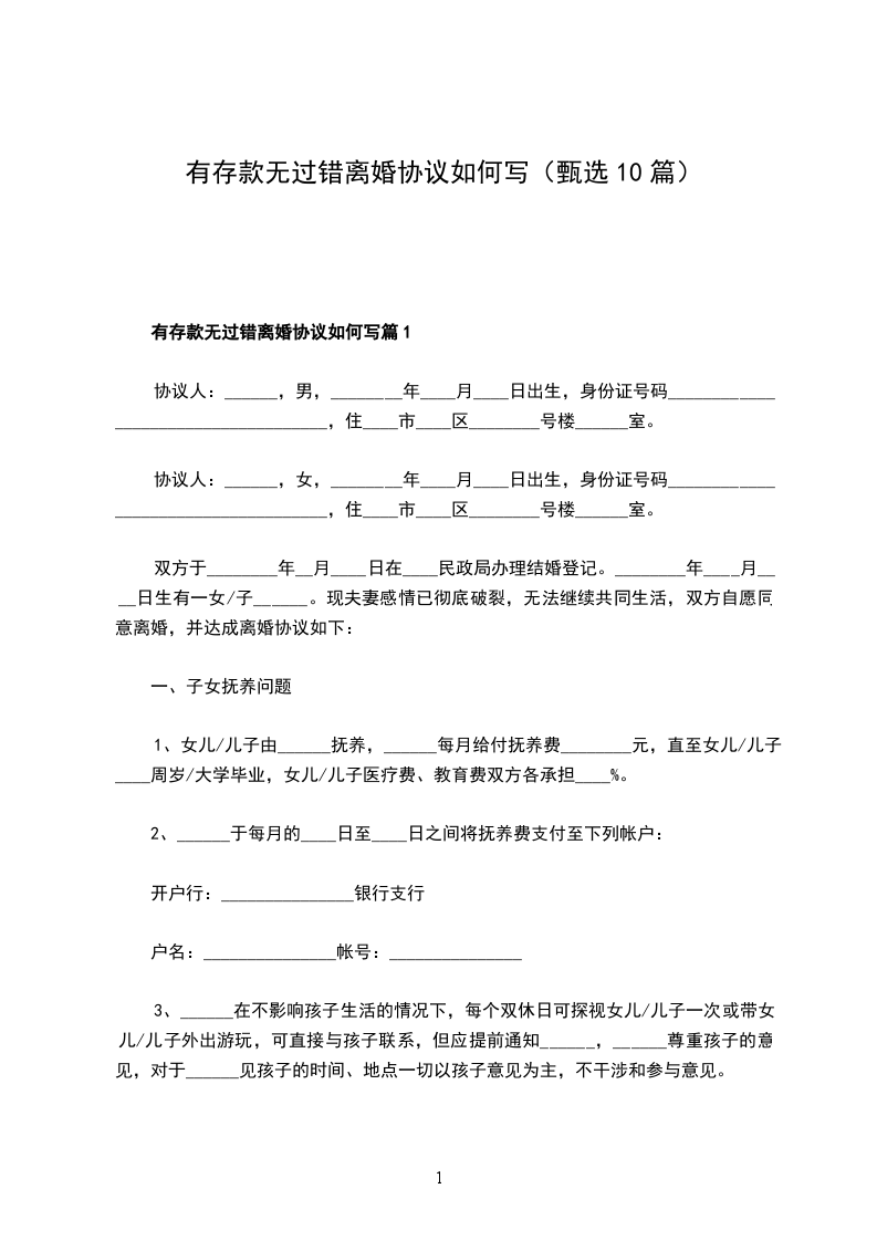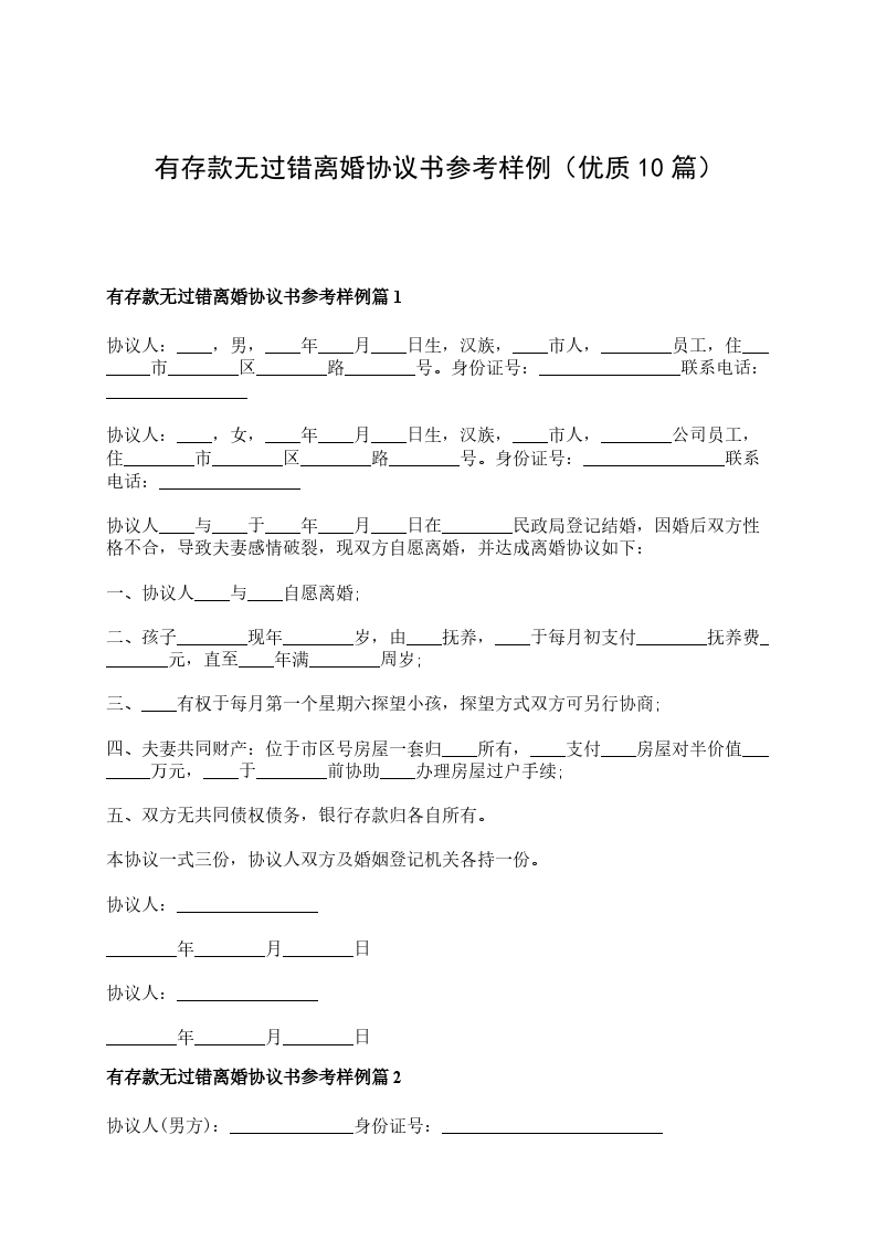 有存款无过错离婚协议参考样例篇10