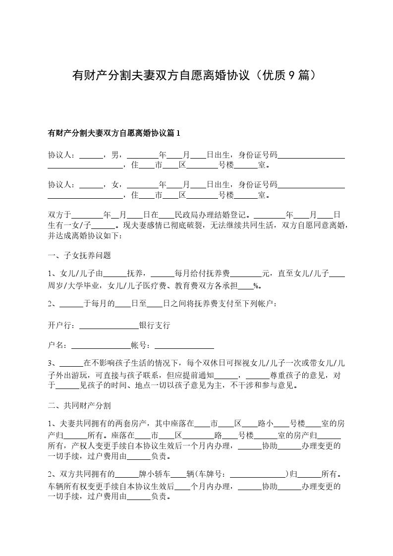 有财产自愿协议离婚书参考格式篇9