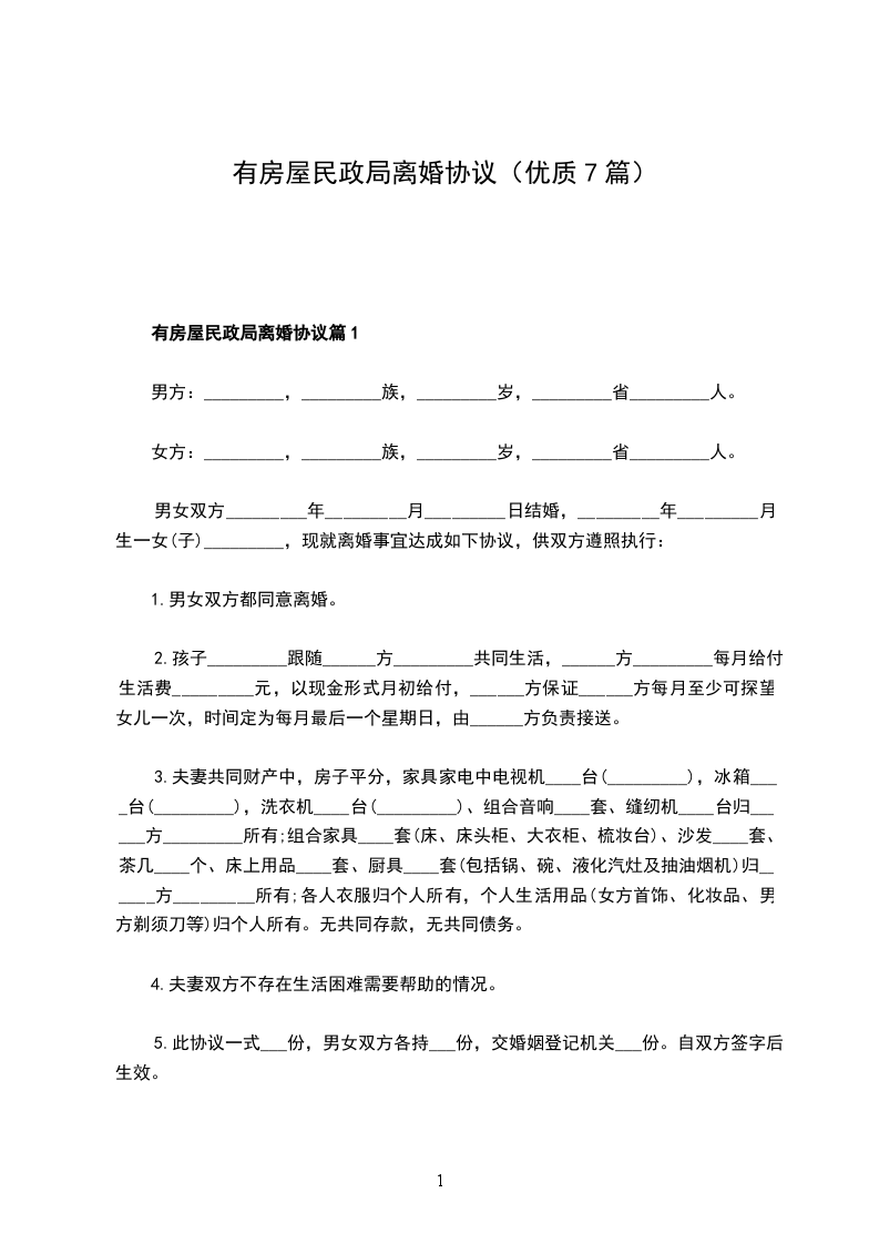 有房屋民政局离婚协议篇7