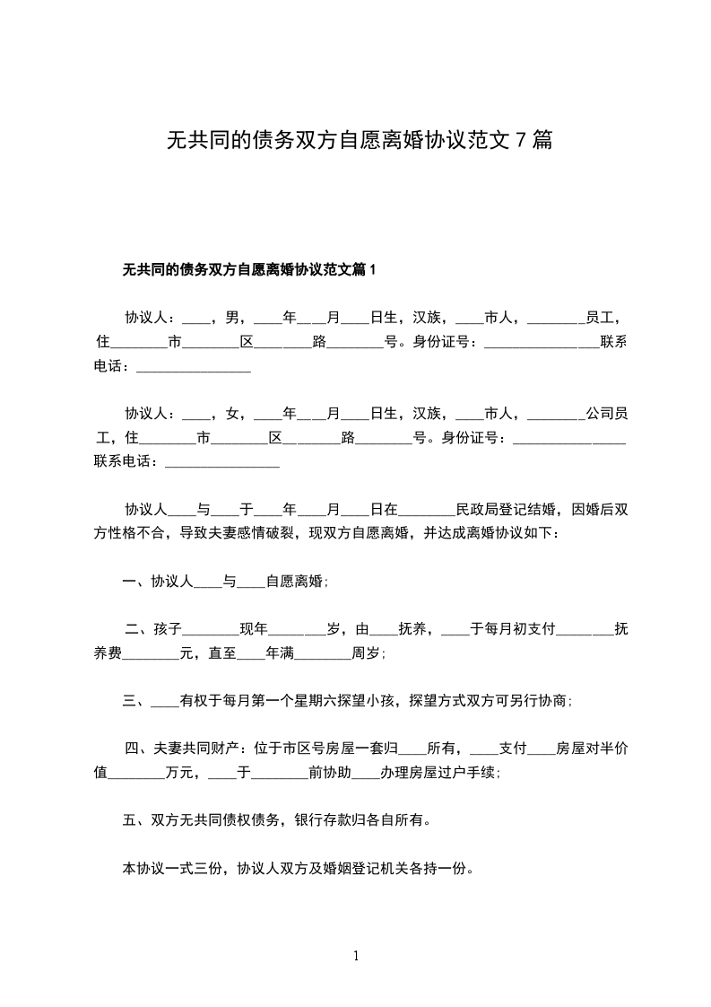 五、双方确认在婚姻关系存续期间没有发生任何共同债务,任何一方如对外负有债务的,由负债方自行承担。