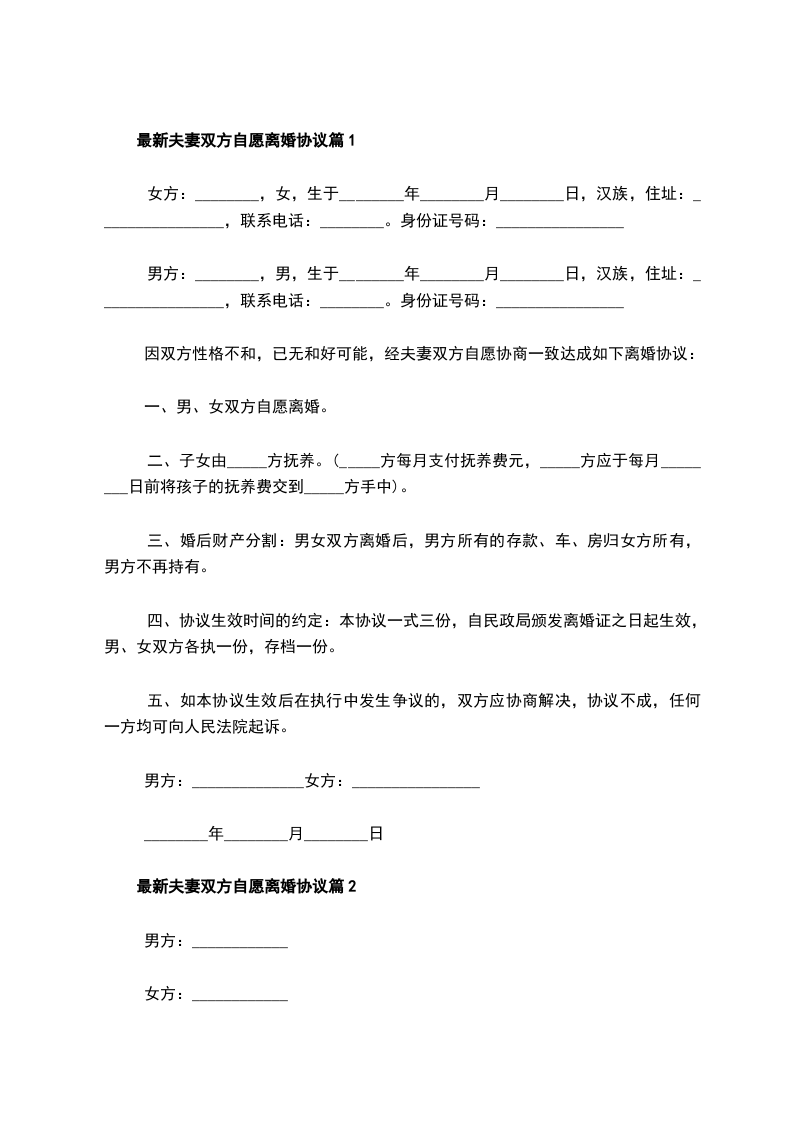 因协议人双方性格不合,夫妻感情破裂,无法继续共同生活,已无和好可能。现双方就自愿离婚一事达成如下协议: