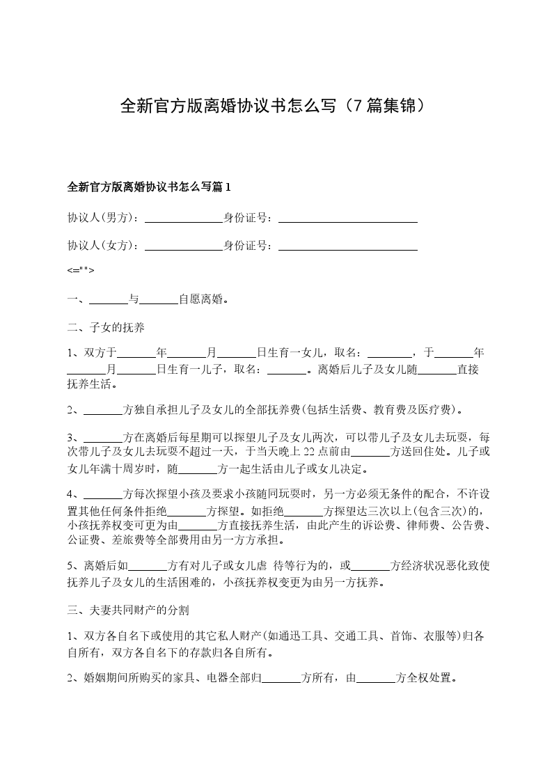 注:本协议一式______份,男女双方各______份,婚姻登记机关_____份。