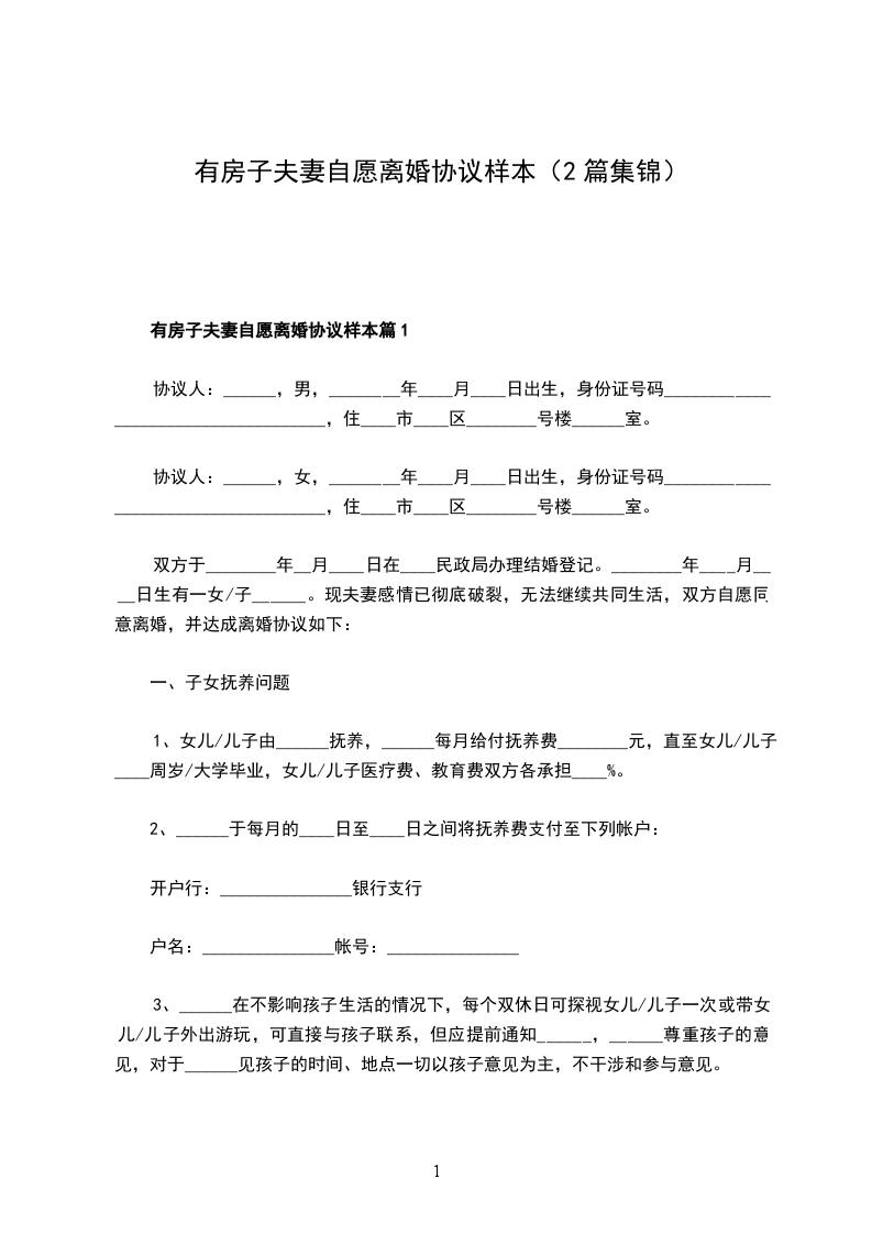 三、夫妻有座落在______路______号的______楼房一套,价值人民币6万元,现协商归女方所有,由女方一次性给付男方现金3万元。房内的家用电器及家俱等等(见清单),双方同意作价2万元,归女方所有,女方向男方支付1万元。无其他共同存款。